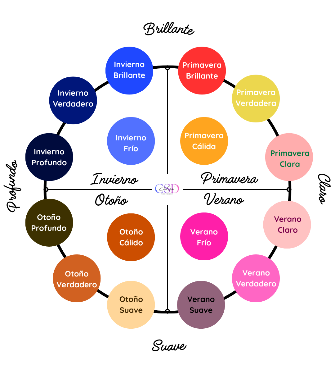 Mi enfoque también se apoya en el sistema de las 12 estaciones que estudié con Louisa Gabriel en The Style Academy International, donde adquirí una base sólida y estructurada en temperatura, valor, intensidad y contraste, así como una comprensión clara de cómo estos elementos interactúan para potenciar los rasgos naturales de cada persona.